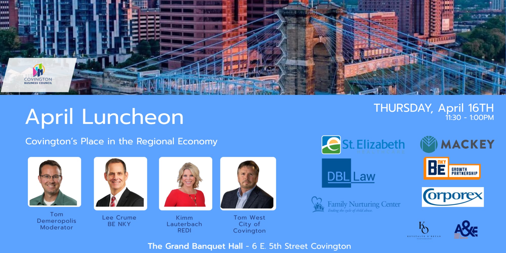 Join us for a forward-looking conversation with regional economic development leaders as we explore Covington’s expanding role in the Northern Kentucky and Greater Cincinnati economies.