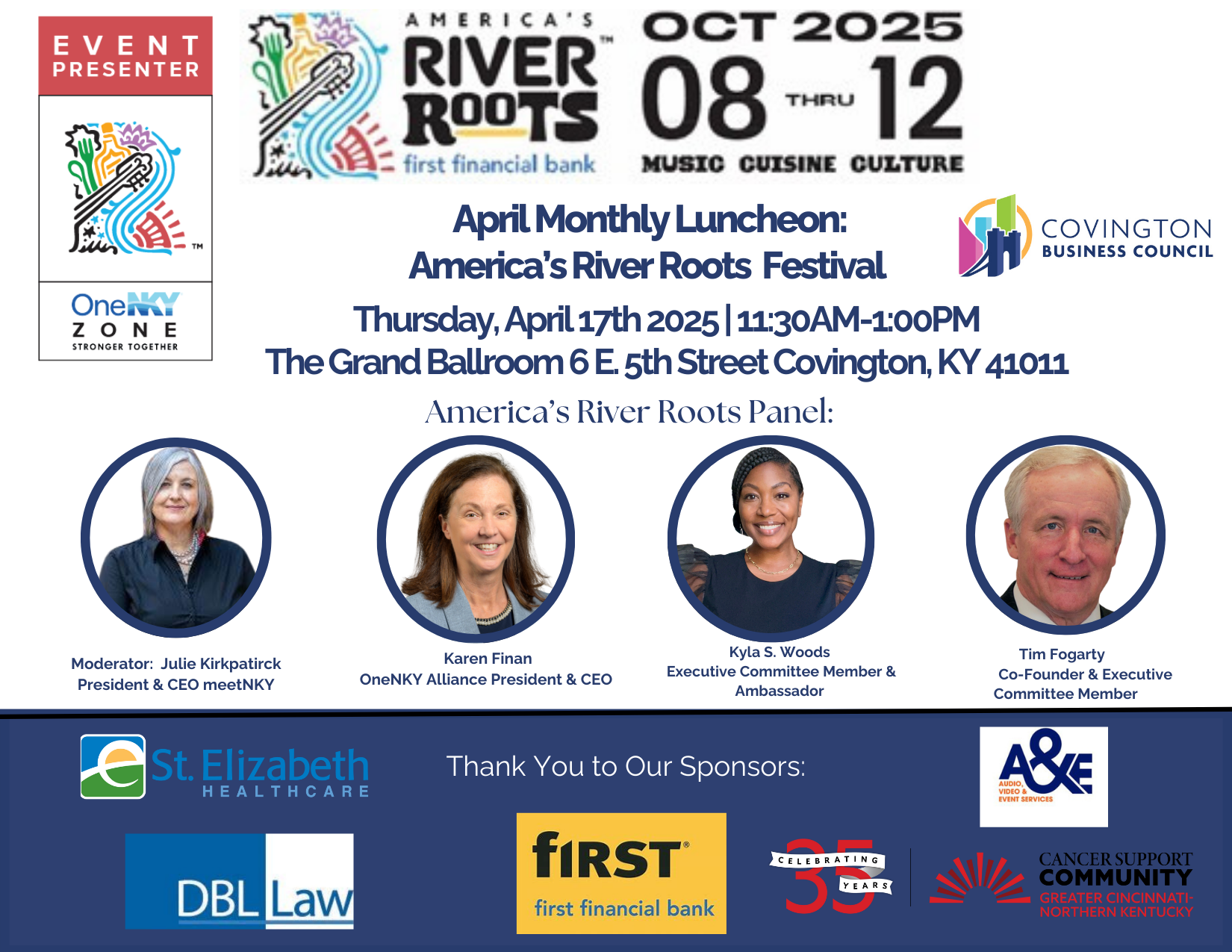An exceptional cast of community leaders and sponsors have assembled to host a signature event that celebrates Ohio River Valley’s pivotal role in shaping our nation in advance of its upcoming 250th birthday in 2026. The event has been designated by the America 250-Ohio Commission with a request to the national commission for America’s River Roots to be the official kick off signature event in October 2025. OneNKY Alliance member companies are sponsoring OneNKY Zones in Newport and Covington where the festival will come to life.
