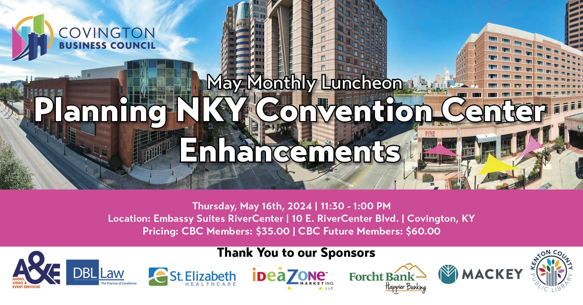 Join us for the May 16th CBC luncheon as President & CEO of meetNKY, Julie Kirkpatrick presents on the impact of the Northern Kentucky Convention Center over the last 25 years, the final futures report on the center by Convention, Sports and Leisure as well as trends in the convention industry that could happen at our own convention center.