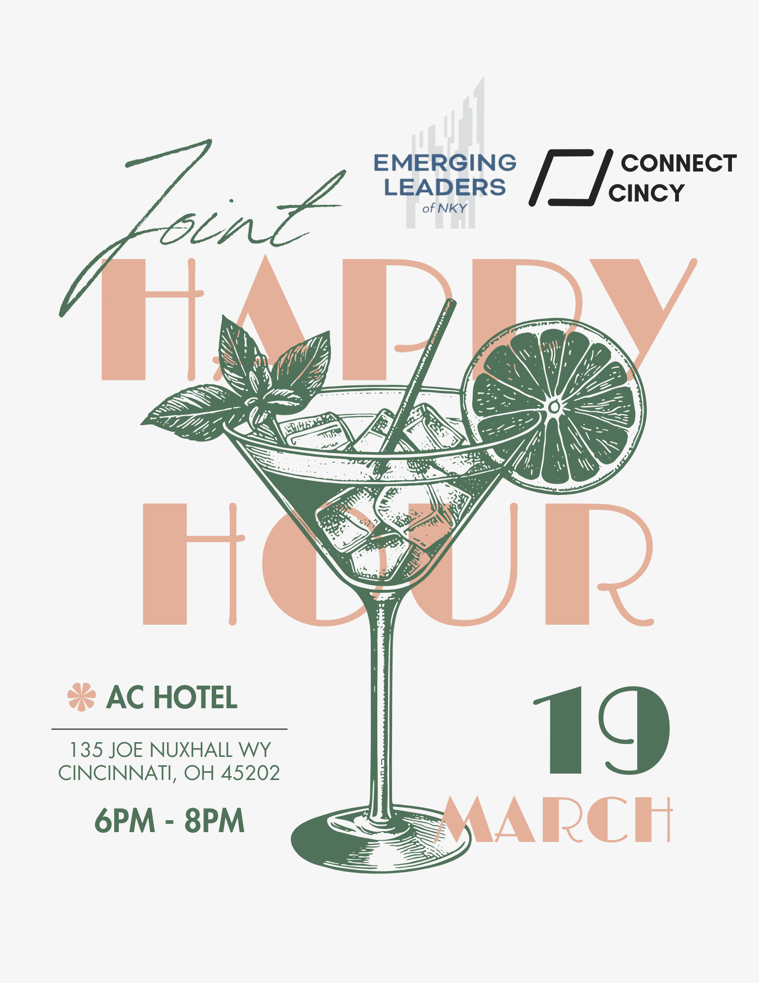 Emerging Leaders Of NKYis excited to partner withConnect Cincyfor a joint March networking event at the beautiful AC One Hotel at The Banks. We are thrilled to join together two powerhouse networking groups for a great evening of connections, networking, and relationship building.