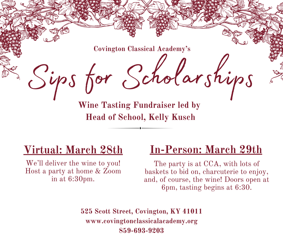 Register at https://www.covingtonclassicalacademy.org/wine-tasting/